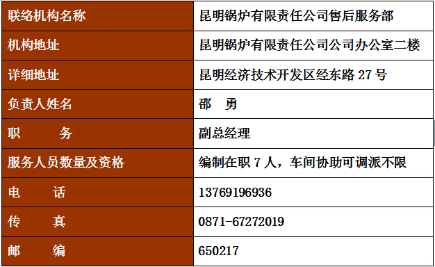 昆明鍋爐有限責任公司 地址:昆明國家經(jīng)濟技術開發(fā)區(qū)經(jīng)東路27號
